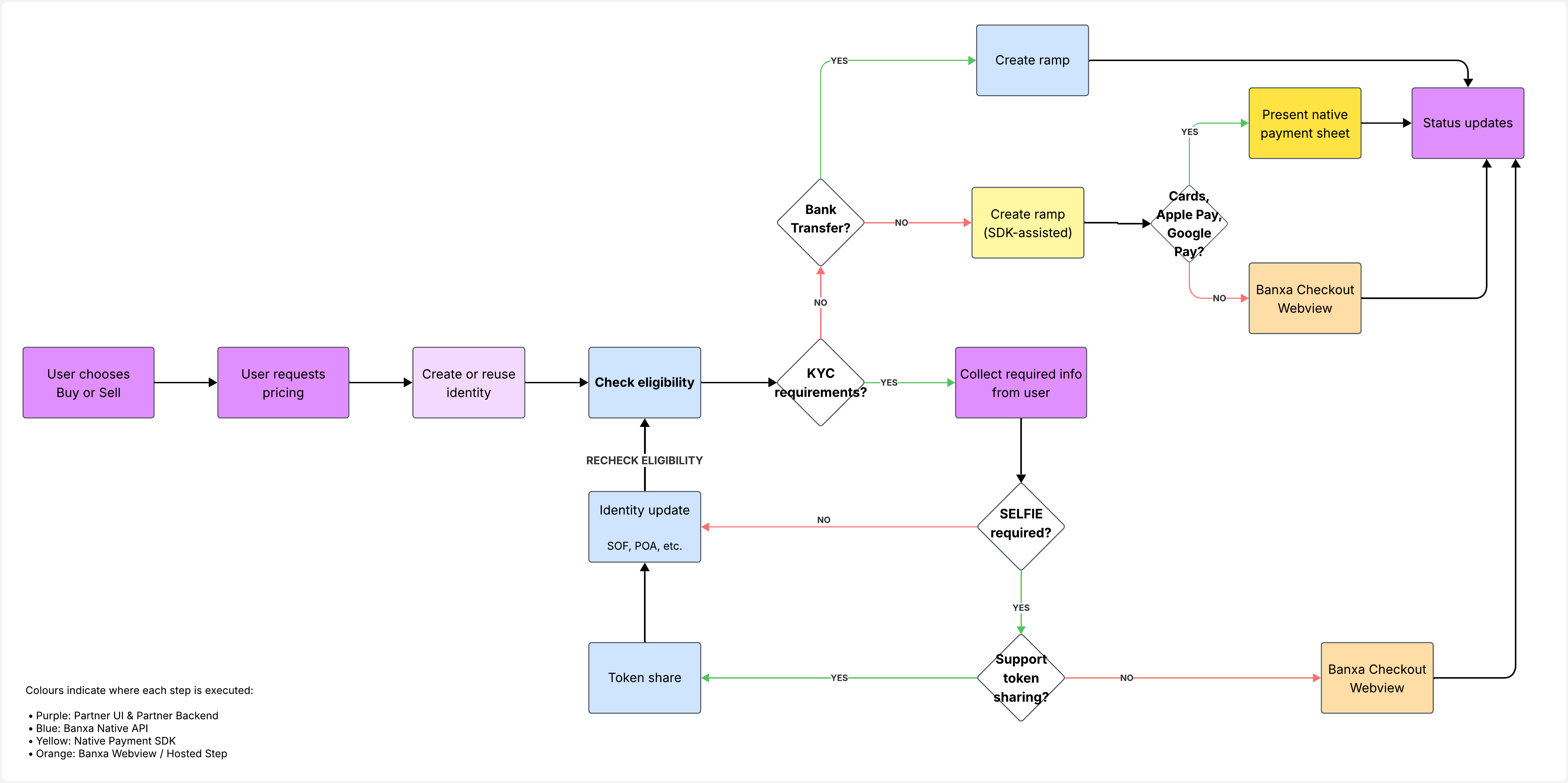 - Cards / Apple Pay / Google Pay → SDK-assisted ramp creation (for supported native mobile integrations)